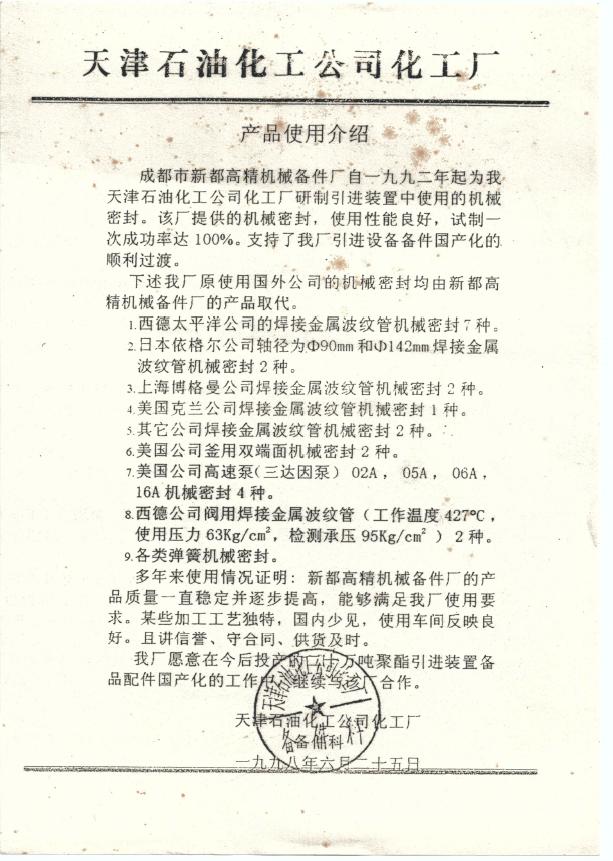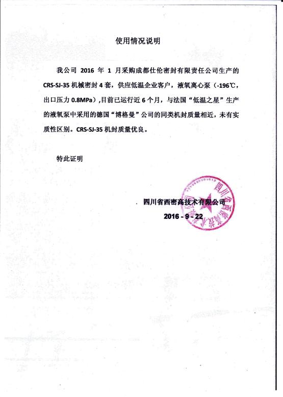 四川省西密高技术有限公司使用报告