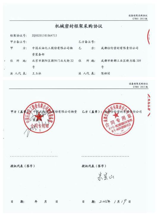 中国石化机械密封框架采购协议